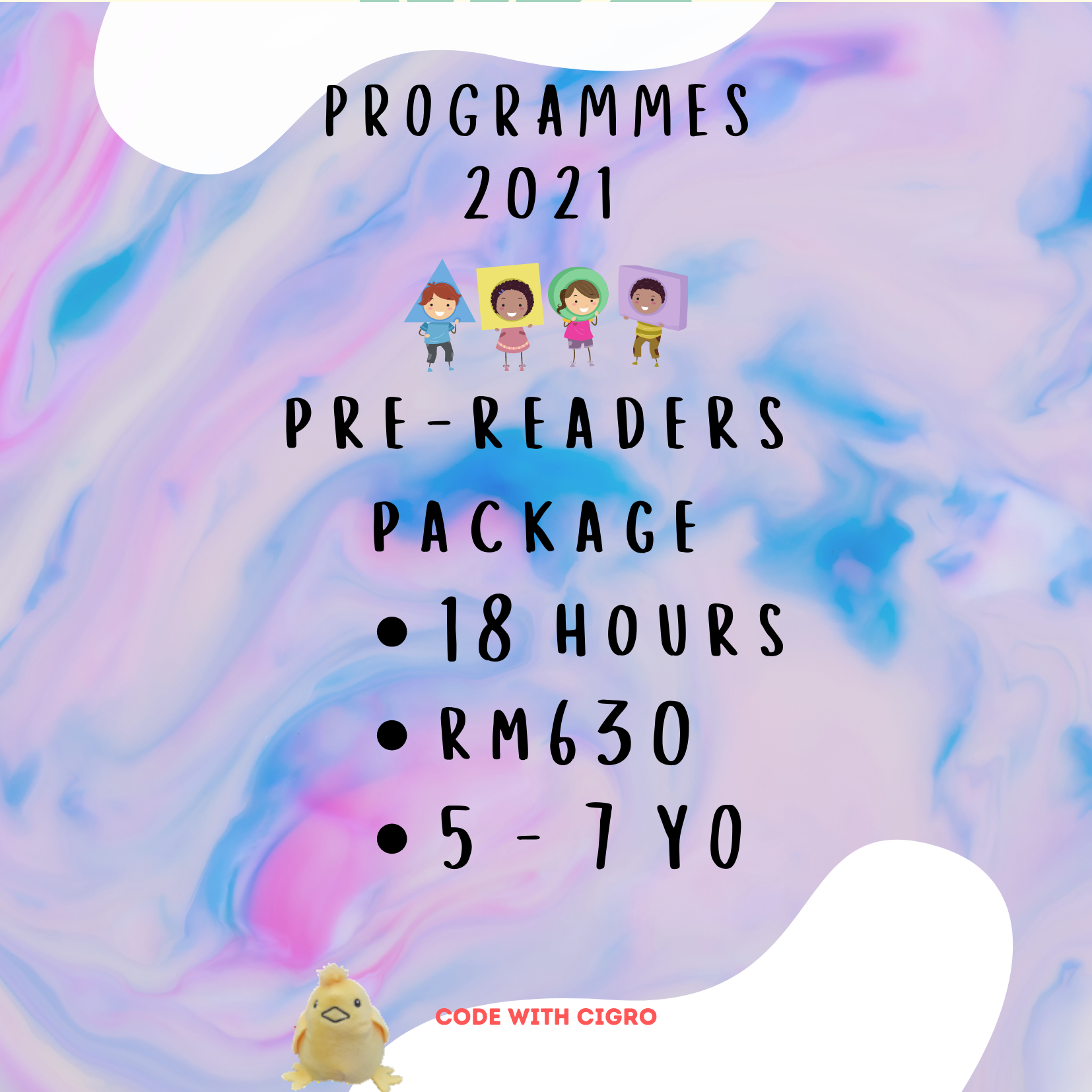 1-Month Pre-reader's Package: This course fees includes materials and 4hours (Hourly one-to-one virtual live sessions) with the Coding Instructor.